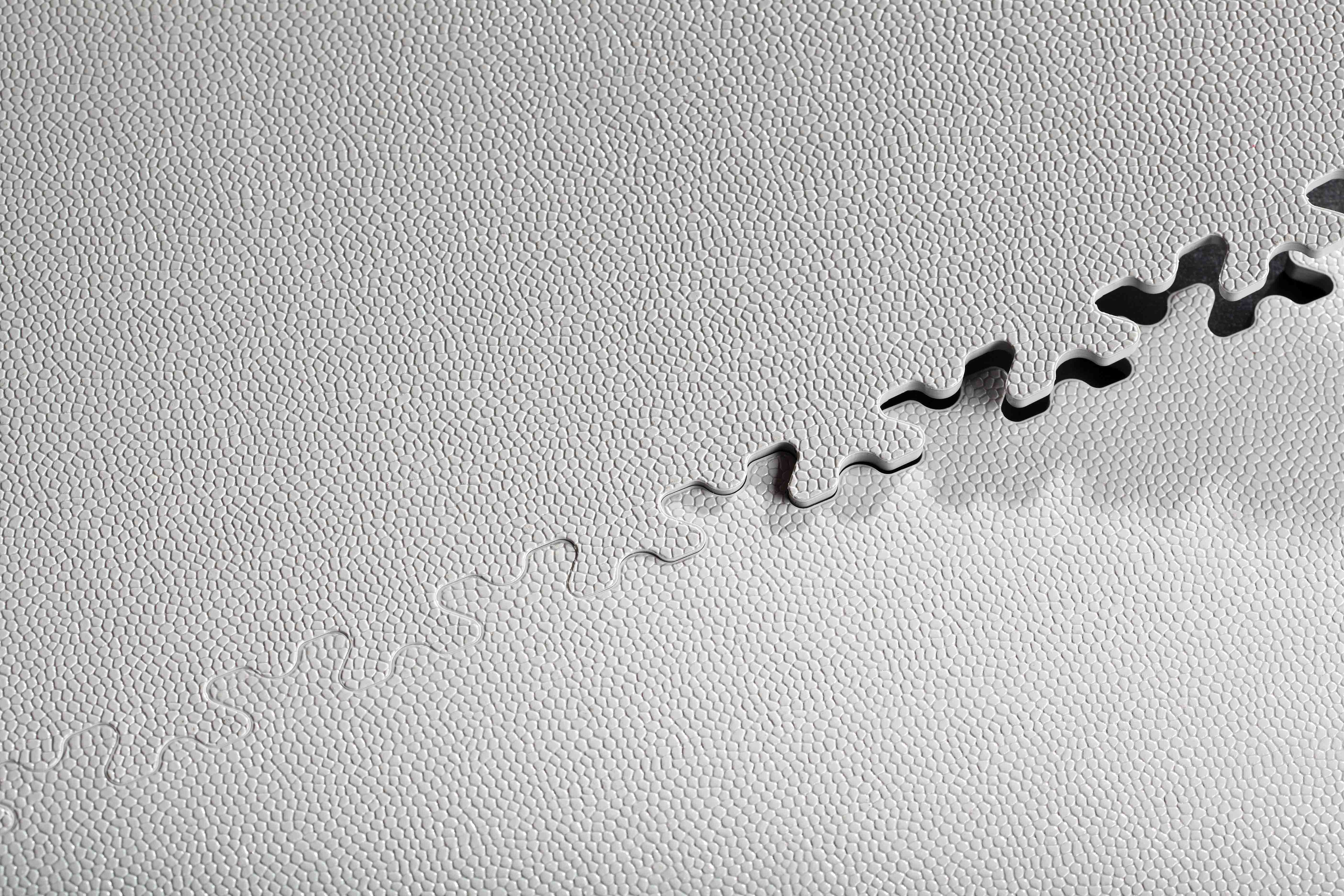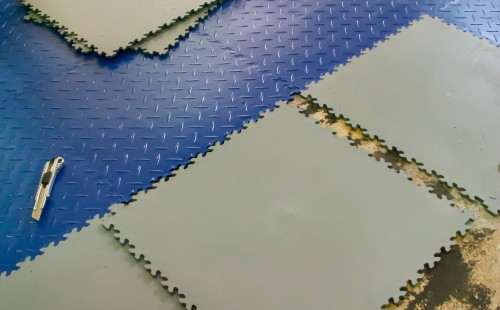 Dlaždice řezejte tak, aby okolo sloupů, regálů a stěn byla alespoň 5 mm mezera Tuto spáru je možno vytmelit pružným tmelem nebo zakrýt lištou. Řezání můžete provést jednoduše kvalitnějším odlamovacím nožem, kdyby Vám to nešlo úplně snadno, doporučujeme dlaždice nahřát a pak už to půjde jako po másle.