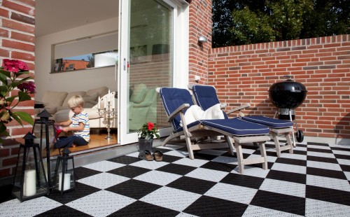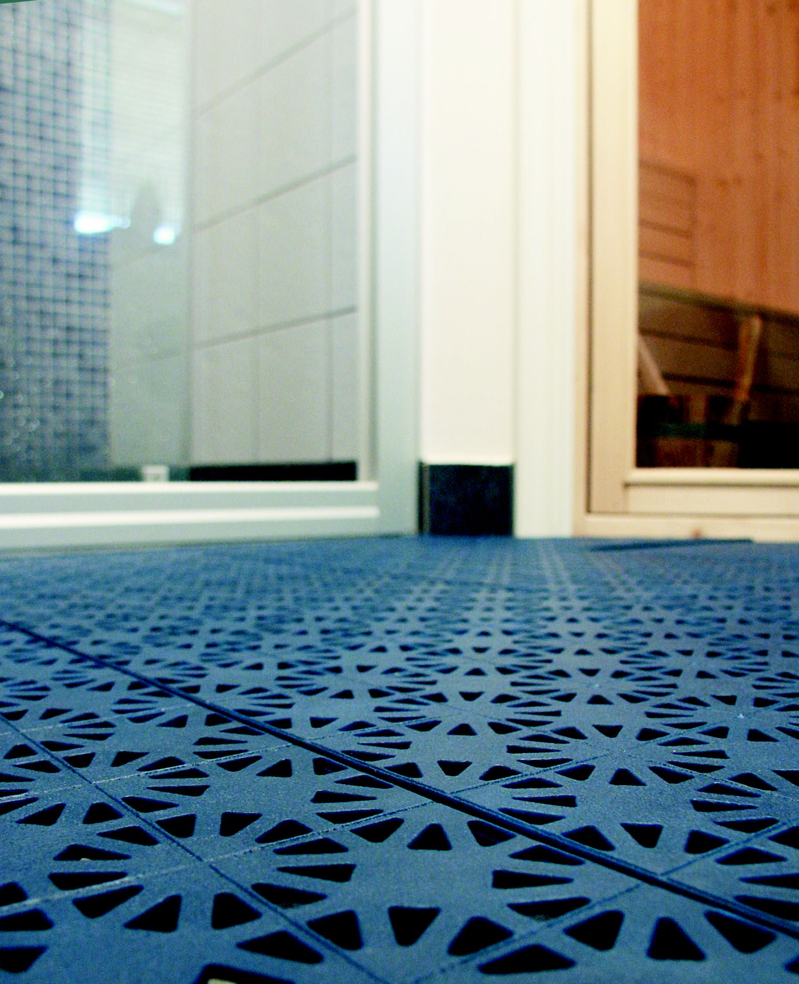 Jejich speciální design zaujme nejen svou estetickou linií, ale umožňuje, aby veškerá vlhkost odtékala dlaždicemi, takže podklad může přirozeně dýchat. Ten můžete rychle a snadno čistit kdykoliv během roku, protože dlaždice Hestra jsou instalovány zcela bez lepení nebo vrtání, a tak lze celou podlahu rychle rozebrat a znovu složit.
