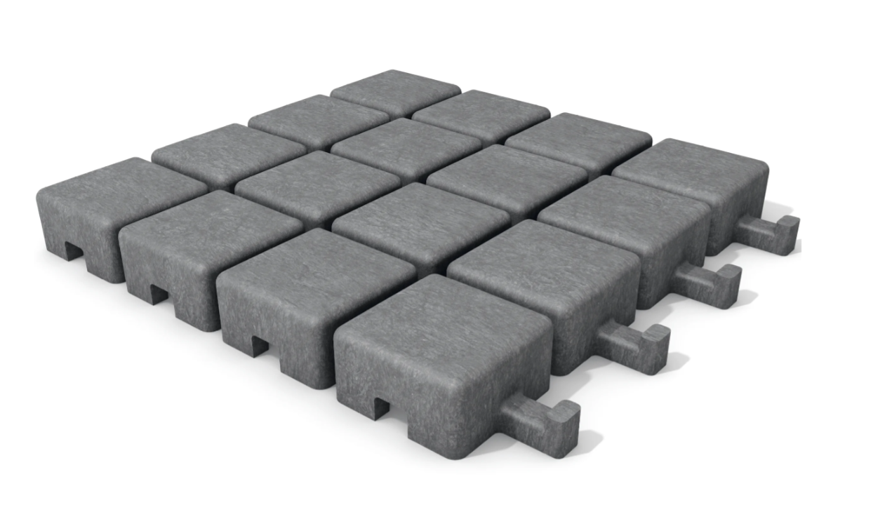 Recyklovaný dlažební kámen Mosolut PFS je moderní ekologickou alternativou ke klasické betonové dlažbě. Výroba z recyklovaného plastu, nabízí dlouhou životnost, odolnost vůči povětrnostním vlivům a mechanickému zatížení.