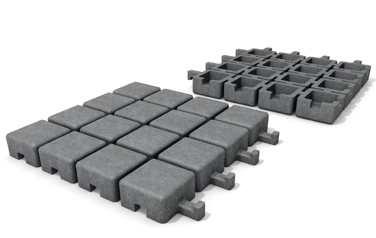 Dlažební systém přitom zůstává šetrný k životnímu prostředí. Materiál s certifikací Blue Angel se nenahřívá ani nesaje vodu tak, jak klasická betonová dlažba, ale umožňuje její průtok do podkladu. Tím je vhodný i k parkovým stromům a keřům.