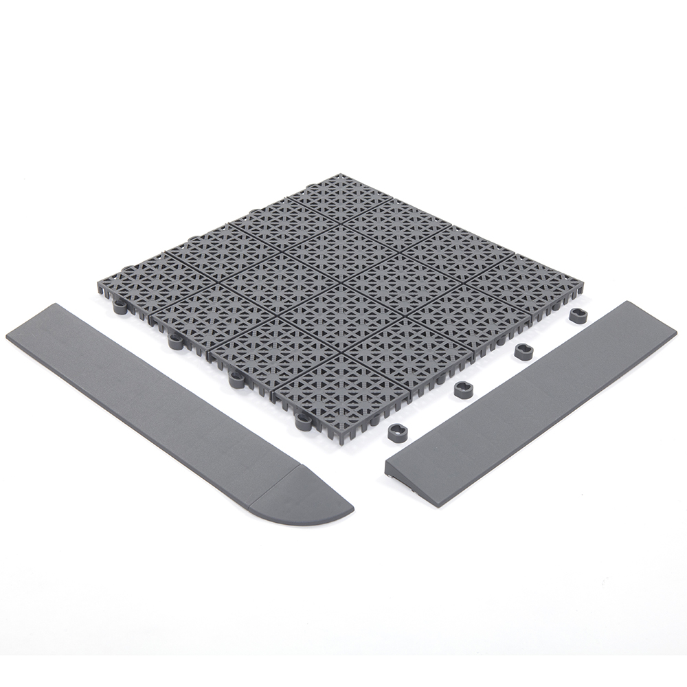 Univerzální podlahový nájezd s rohem pro typ dlaždice Hestra Universa umožňující plynulý nájezd či přechod na podlahu. Tento typ příslušenství využijete v případě, kdy chcete pohodlně vjíždět do své dílny, potřebujete udělat z dlaždic pracovní ostrůvek, nebo využijete dlaždice jako výstavní plochu pro vaše produkty. Zakončením podlahy pomocí nájezdů dosáhnete dokonalého a uceleného vzhledu celého prostoru. Nájezdy s rohy jsou vyráběny ve stejných barvách k příslušným dlaždicím.