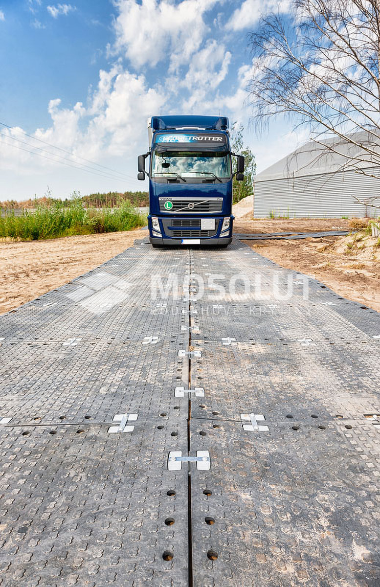 Silniční panely Mosolut Road System jsou na jednu stranu lehké, ale přitom extrémně odolné a pevné, velmi snadno se přizpůsobí různým povrchům. Není proto zapotřebí nákladné vyrovnávání a zpevňování podkladu. Panely se jednoduše přizpůsobí dané ploše. Pokládka plastových silničních panelů Mosolut Road System nevyžaduje žádné další speciální vybavení, je snadná a rychlá. S panely se snadno manipuluje – jeden panel lehce unesete ve dvou.
