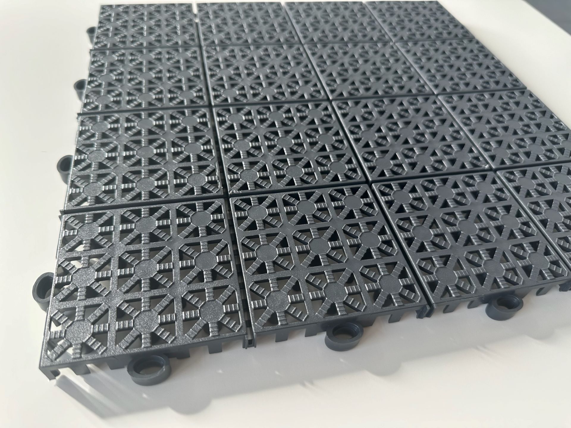 Tento typ dlažby nabízíme pouze v tmavě šedé barvě, protože je vyrobena z recyklovaného plastu.