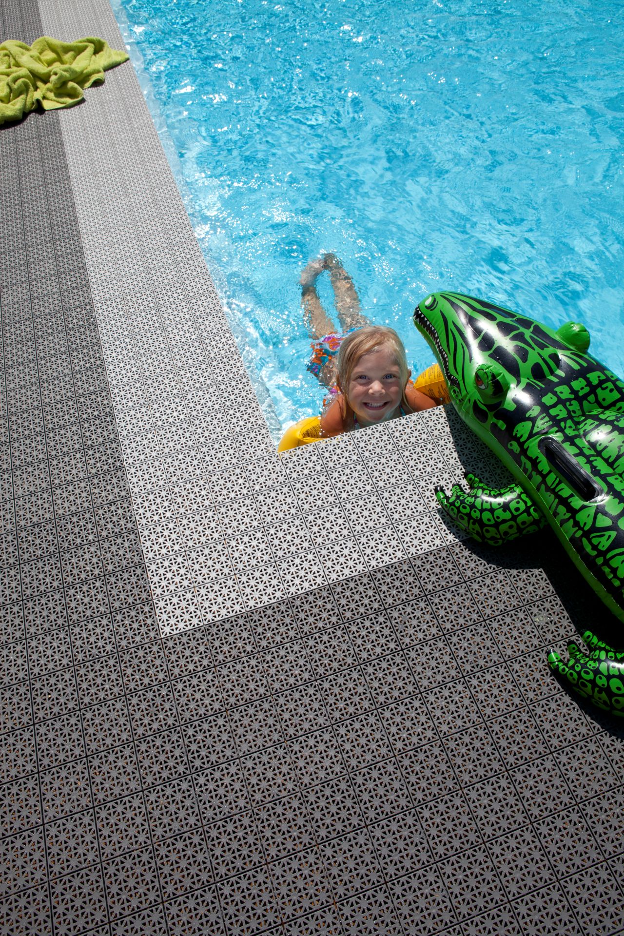 Sháníte kvalitní a bezpečnou podlahovinu okolo venkovního bazénu, na terase, či pergole? Zkuste švédské dlaždice z řady Universa. Právě ty dokáží dotvořit bezprostřední okolí na vaší zahradě a povzbudit celkový dojem z daného exteriéru. Nejvíce je oceníte právě v okolí bazénů a to nejen z estetického hlediska, ale také z hlediska funkčnosti a bezpečnosti. Nezapomínejte, že bazén je oblíbeným místem radovánek vašich dětí, proto by jeho okolí mělo být bezpečnou zónou, kde nehrozí žádný úraz.
