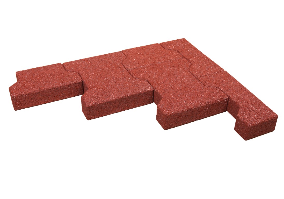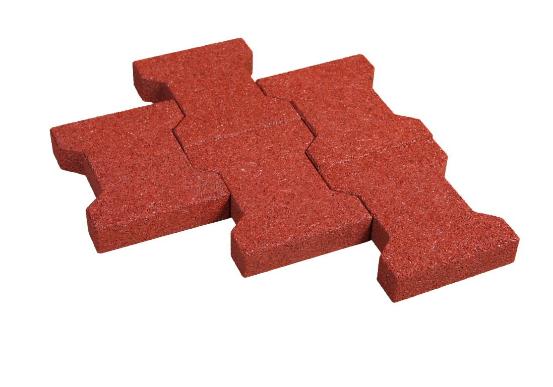 Zámková dlažba Mosolut RUBBER v provedení H-profil v červené barvě. Populární konstrukci zámkové dlaždice, kterou známe v obvyklém betonovém provedení, vám nyní nabízíme vyrobenou z pryže. Její předností zůstává pevná vazba mezi dlažebními kameny, které do sebe zapadají a tvoří pevný zámek proti posouvání avšak nyní je nutné vyzdvihnout pohodlný a bezpečný povrch.
