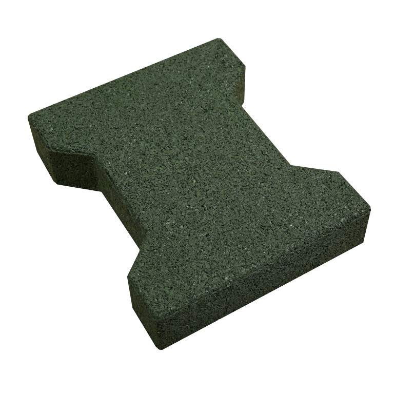 Zelená zámková dlažba Mosolut RUBBER v provedení H-profil. Populární konstrukci zámkové dlaždice, kterou známe v obvyklém betonovém provedení, vám nyní nabízíme vyrobenou z pryže. Její předností zůstává pevná vazba mezi dlažebními kameny, které do sebe zapadají a tvoří pevný zámek proti posouvání, avšak nyní je nutné vyzdvihnout pohodlný a bezpečný povrch.