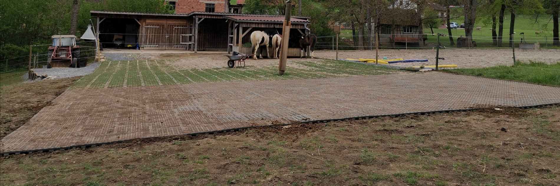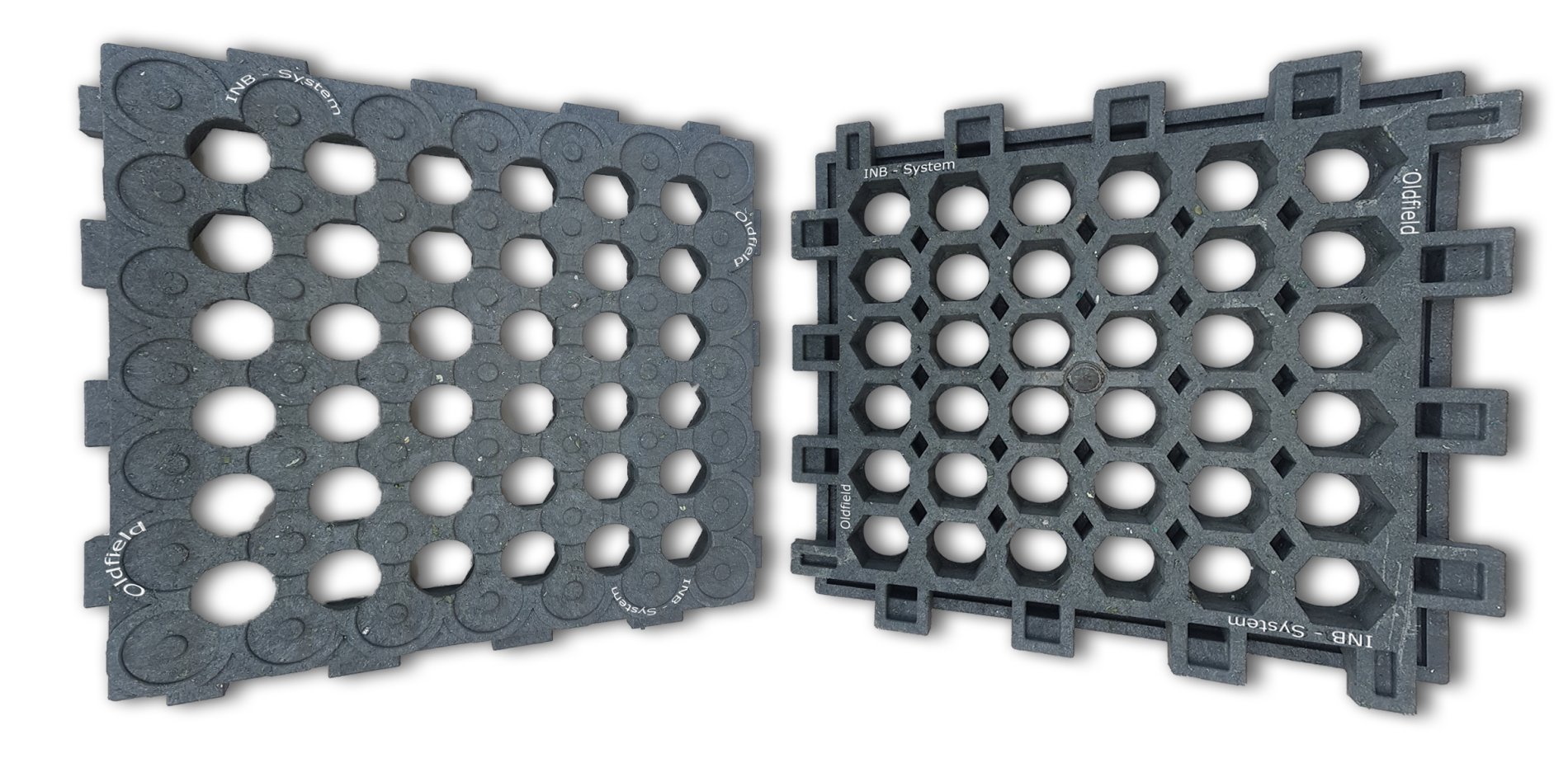INB je extrémně odolná plastová rohož německé výroby, navržená pro zpevnění a odvodnění zatěžovaných venkovních ploch bez nutnosti betonování. Díky chytrému systému spojování a vysoké nosnosti až 60 tun/m² je ideální volbou pro výběhy, stáje, příjezdové cesty i parkovací místa. Rohože jsou vyrobené ze 100 % recyklovaného plastu a certifikované ekologickou značkou Blauer Engel. Vydrží desítky let a pomáhají udržet plochy čisté, stabilní a bezpečné – pro lidi, zvířata i stroje.