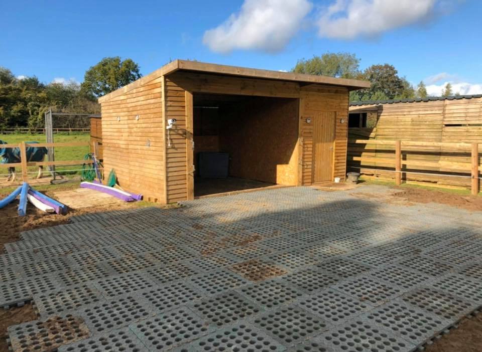Vyrovnejte podklad a položte rohože INB, spojte pomocí zámků jako puzzle. Konstrukci každého dílu je možné zasypat jílem, zeminou či lomovým prachem. Nebo nechat prorůst trávou. Díky otvorům dobře drénují, brání posouvání vrchního sypkého materiálu, i když je vlhký nebo silně zatěžovaný kopyty, takže v něm nevznikají prohlubně ani hromady. Desky je možné položit oboustranně. Jednou stranou zadržují vzduch a tím drží i na mokrých a nezpevněných plochách a druhou stranou zadržují vodu a tím šetří životní prostředí a udržují svoje podloží správně vlhké.