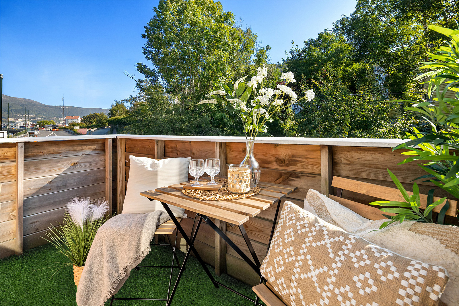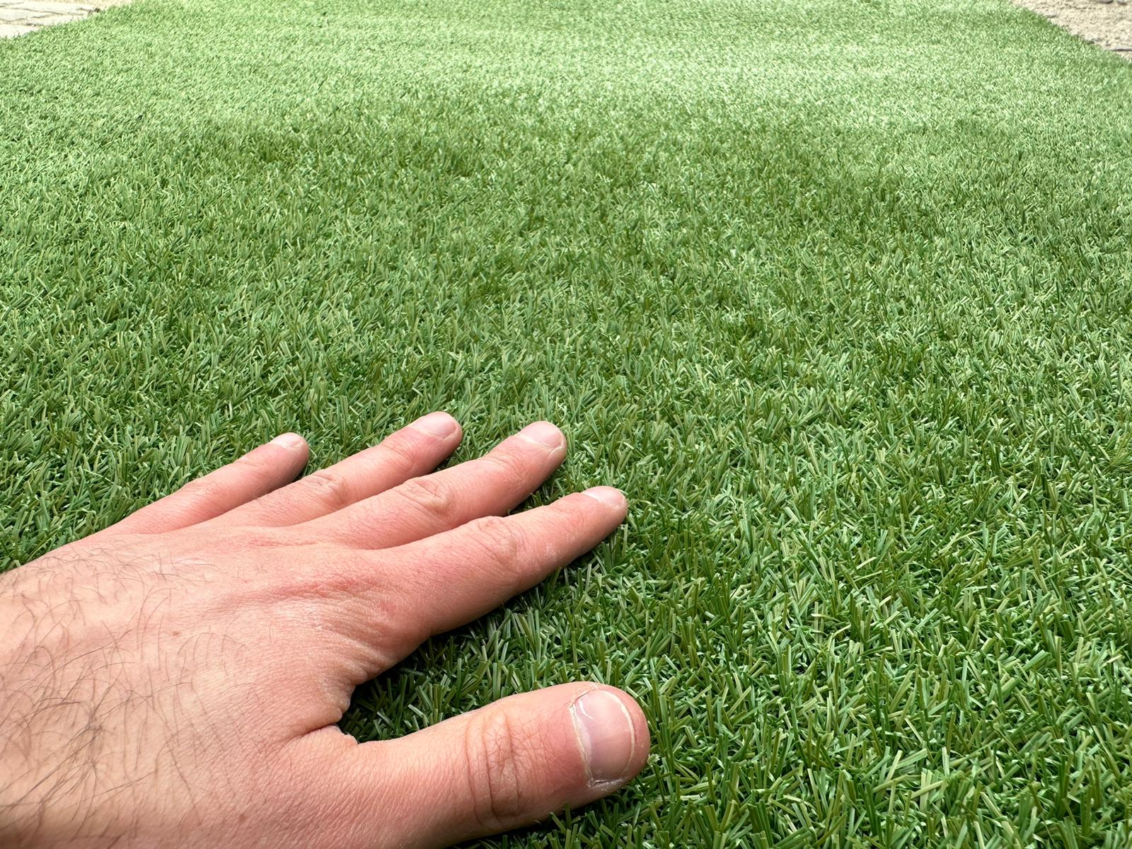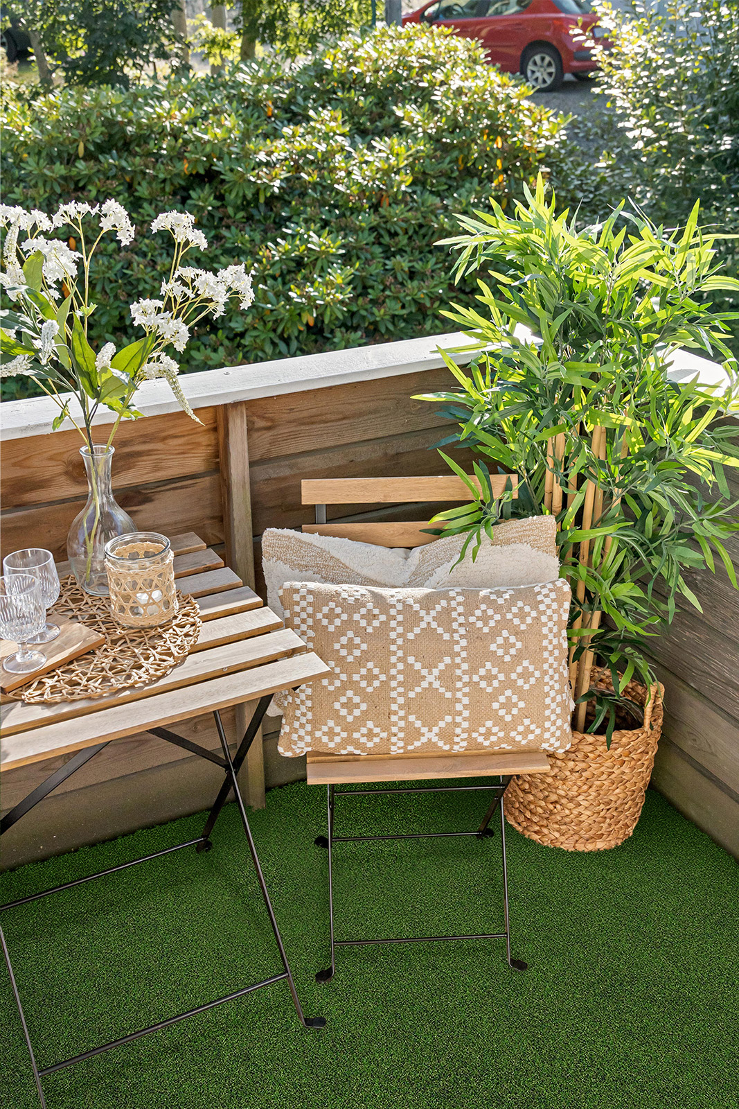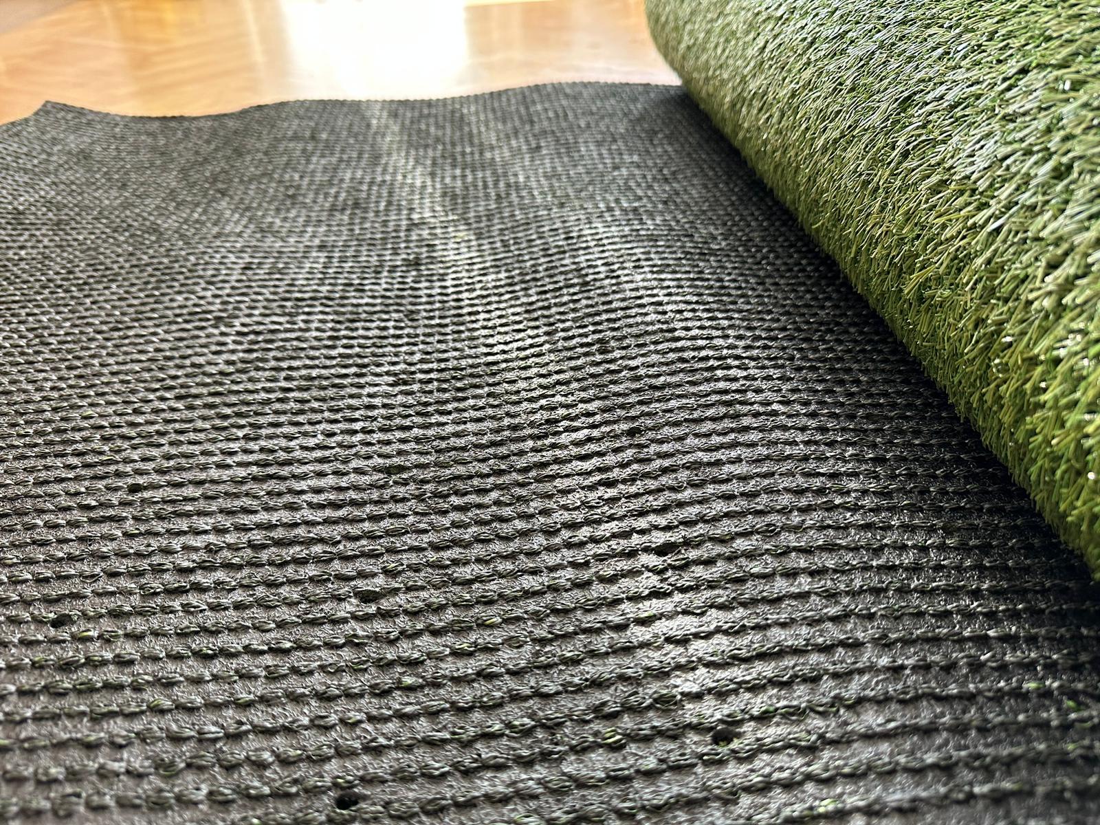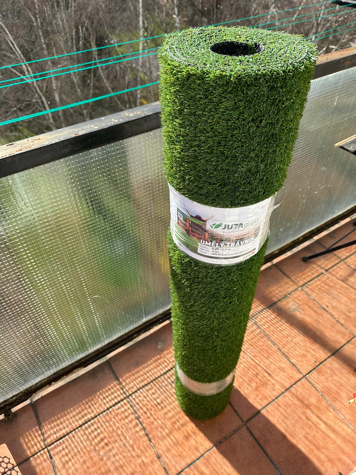 Po rozbalení nechte umělý trávník volně položený a odpočinout alespoň 24h, případně pomozte jednotlivým trsům se narovnat pomocí kartáčování. Pokud vám role vyjde přesně na velikost balkónu, můžete okraje zatížit květináčem, lavicí, nebo skřinkou, aby se nestáčely zpět. Pokud vám rozměr přesně nevyjde a bude třeba dělat dořezy, tak jednotlivé díly spolu slepte oboustrannou lepící páskou. Ta vám to zafixuje i k podkladu.