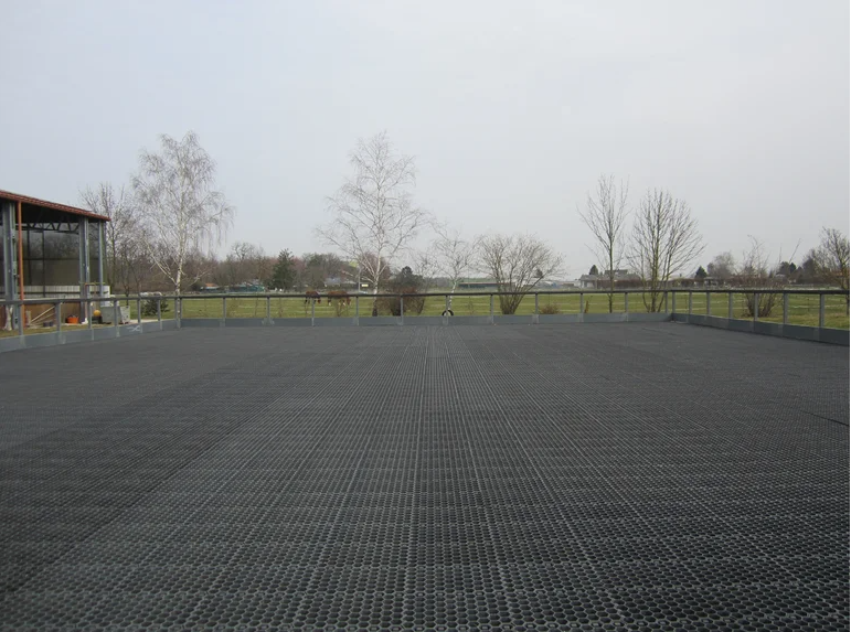 Mosolut PDP je odolná a ekologická perforovaná rohož určená pro zpevnění ploch s vysokou zátěží. Je ideální pro použití ve výbězích pro koně, jezdeckých areálech nebo jako řešení pro stabilizaci a zpevnění svahů. Deska je vyrobena z recyklovaného materiálu, který zajišťuje dlouhou životnost a vysokou odolnost vůči vlivům počasí i mechanickému zatížení.