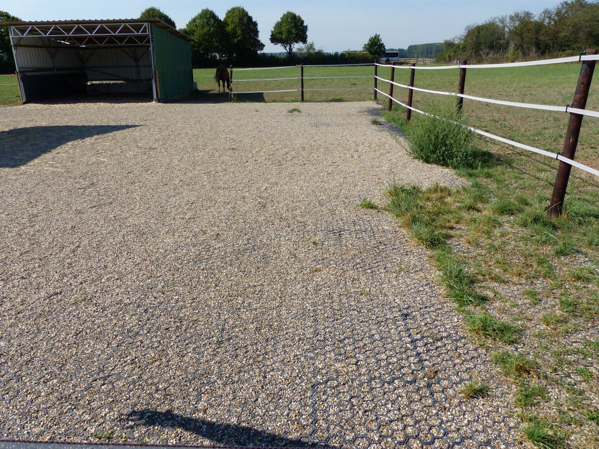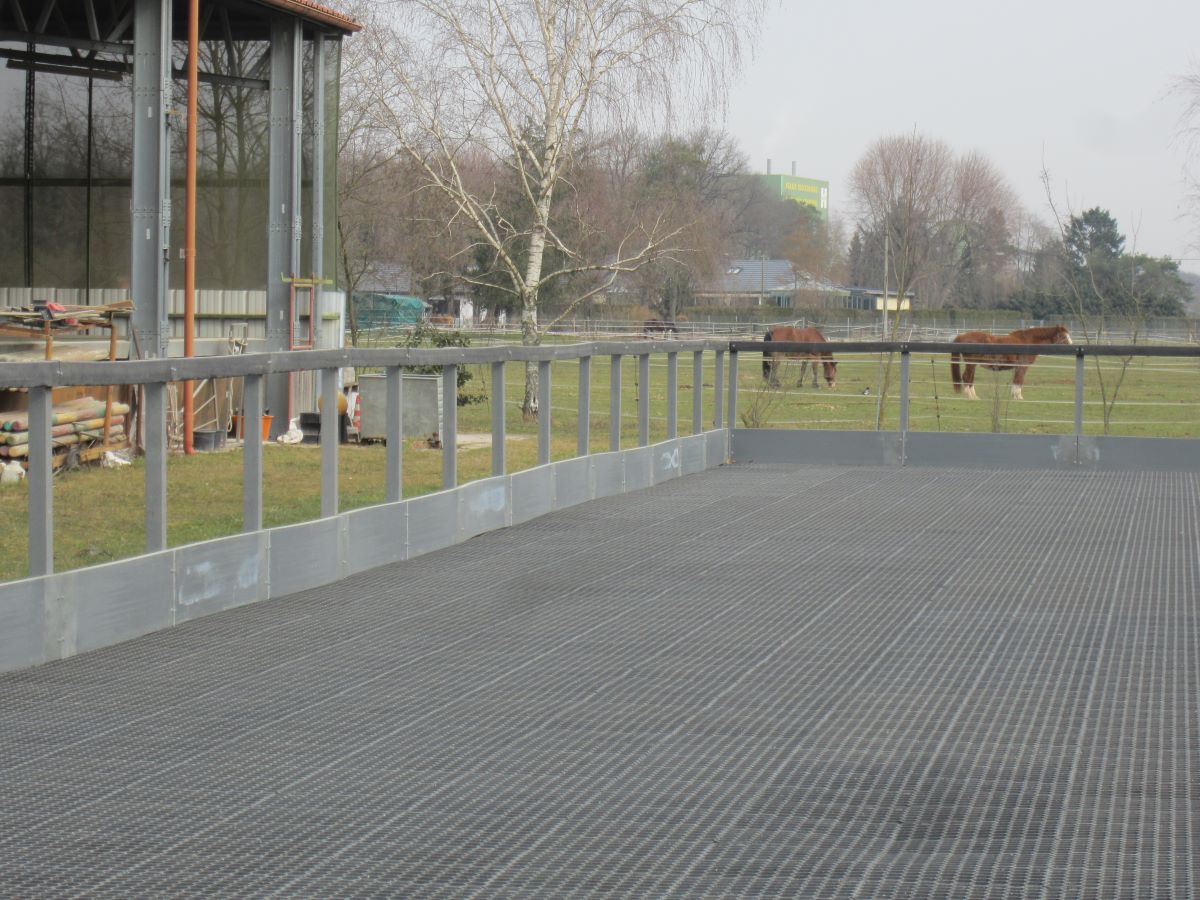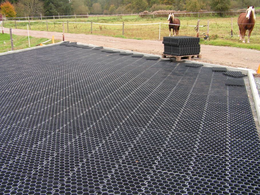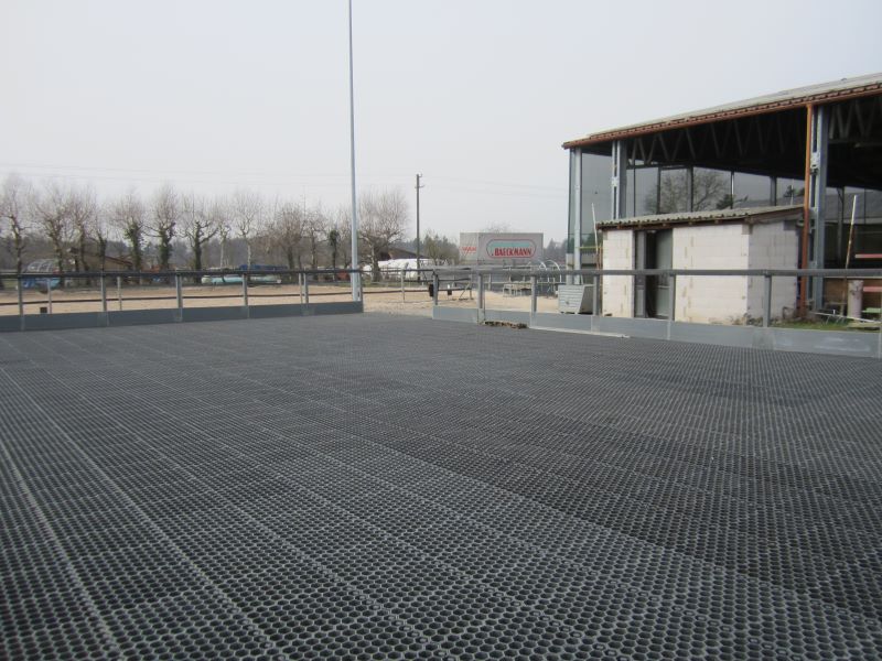 Výběhová rohož Mosolut PDP slouží ke zpevnění povrchu bez poškození podloží. Díky tomu je ideální pro použití v rámci chovu zvířat - pro výběhy, jízdárny a krmné plochy. Tento typ rohože ovšem doporučujeme vždy zasypat svrchní vrstvou, obzvlášť při použití u zvířat. Jako pochozí vrstva je vhodný jemný, měkký písek, mulčovací kůra, nebo dřevěné pelety, případně je možné celkové zatravnění. Při použití písku volte takový, který je vhodný ke zvířatům.