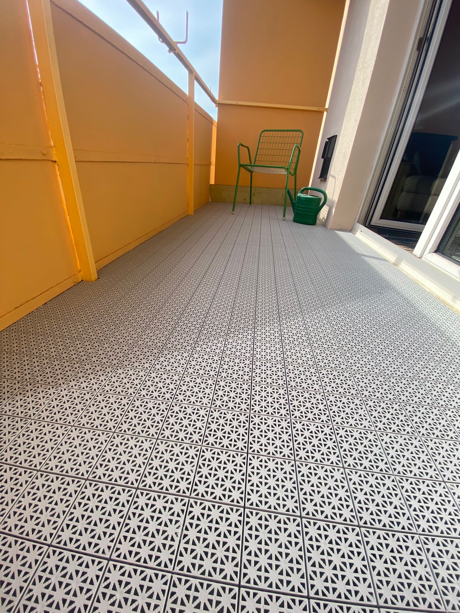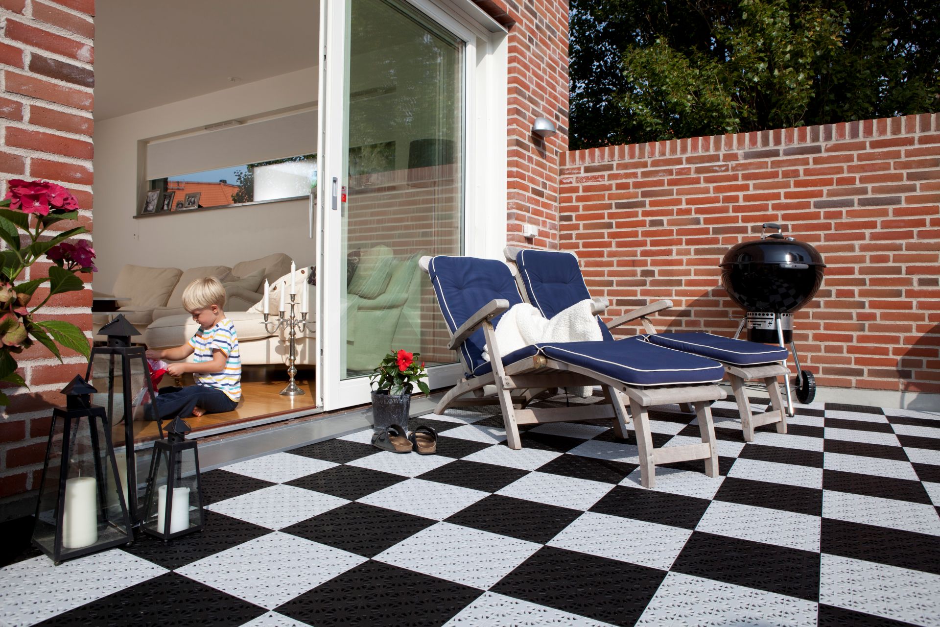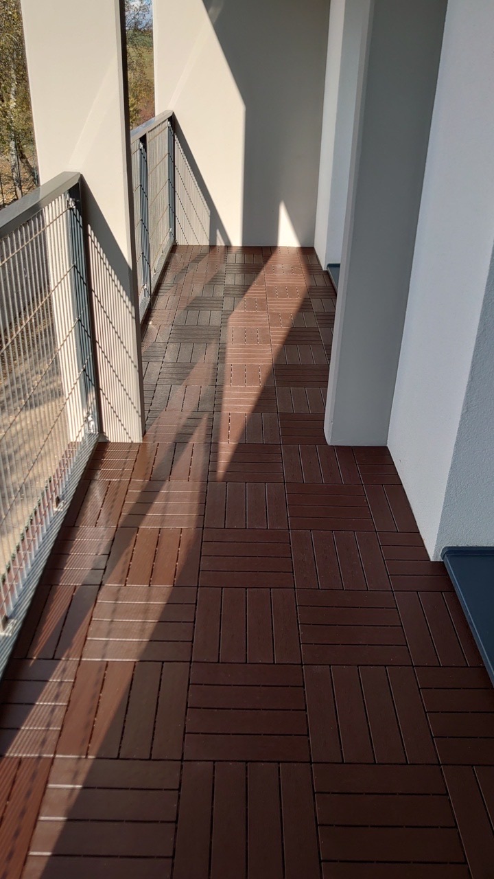 Chtěl jsem něco, o co se nemusím starat a zvládnu udělat sám bez potřeby souhlasu domovníka. Na plastové dlažbě je výhoda téměř nulové údržby a přitom vypadá parádně.