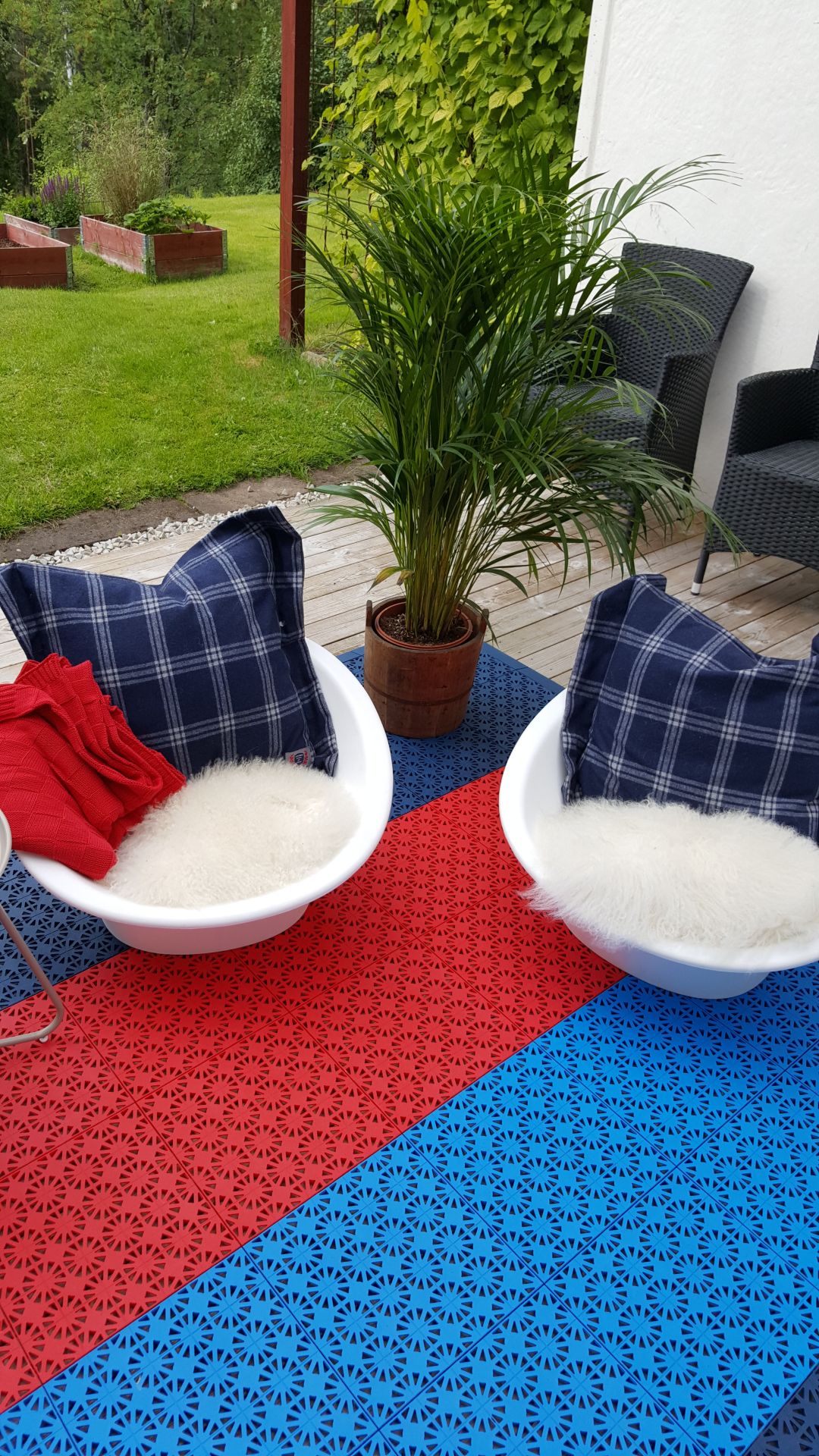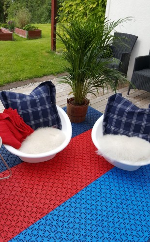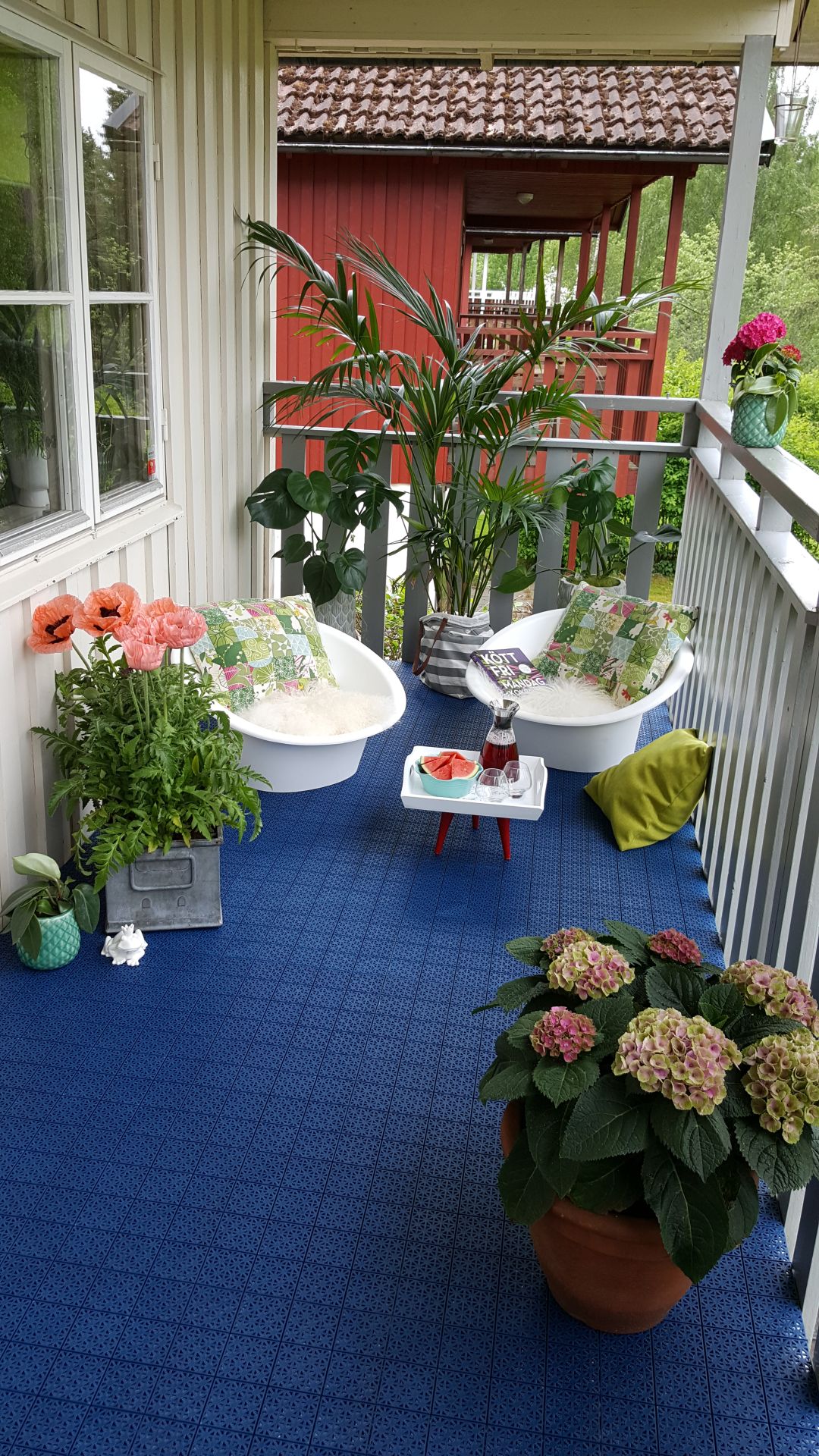 Při revitalizaci domu se trochu pozapomnělo na podlahu na balkonech, proto jsem si ji chtěla vylepšit něčím, co tam bude opticky pasovat. Hestra mě příjemně překvapila, neboť je příjemná i na bosou chůzi, netlačí a ani židličky ji nedřou.